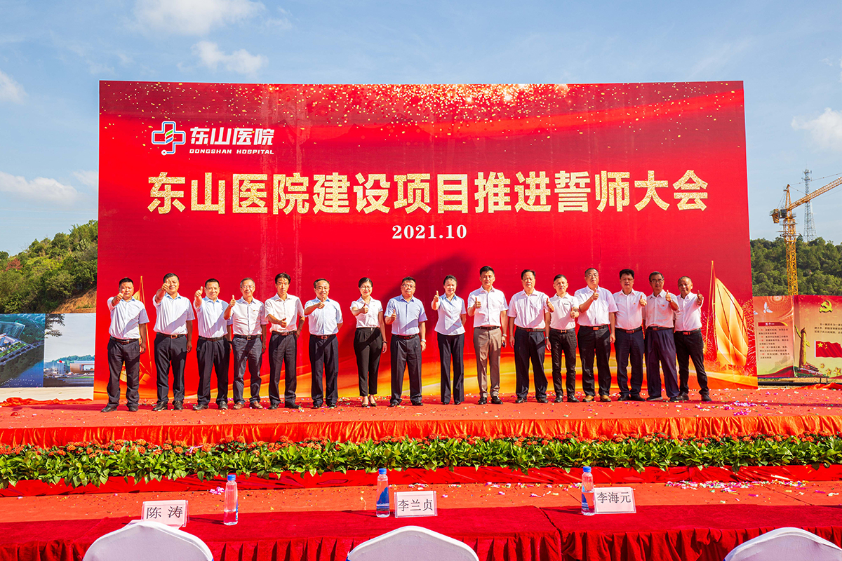 10月11日上午,在热火朝天的东山医院建设现场,东山医院建设项目推进誓师大会圆满举行。国丰源集团董事长李海元、东山医院院长马显力、东山医院项目建设总承包单位天一集团总裁李兰贞、南方医科大学医院管理公司总经理杜仕林,以及该项目相关领导和员工参加了本次誓师大会。